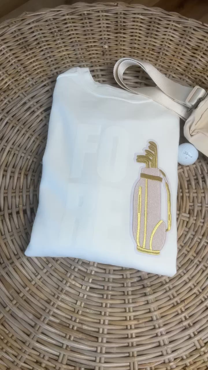 Adorned with a luxurious gold embroidered golf bag patch, this sweatshirt pays homage to the timeless elegance of the sport. The intricate detailing and shimmering gold accents add a touch of refinement, making it a standout piece for any golfer's collection.