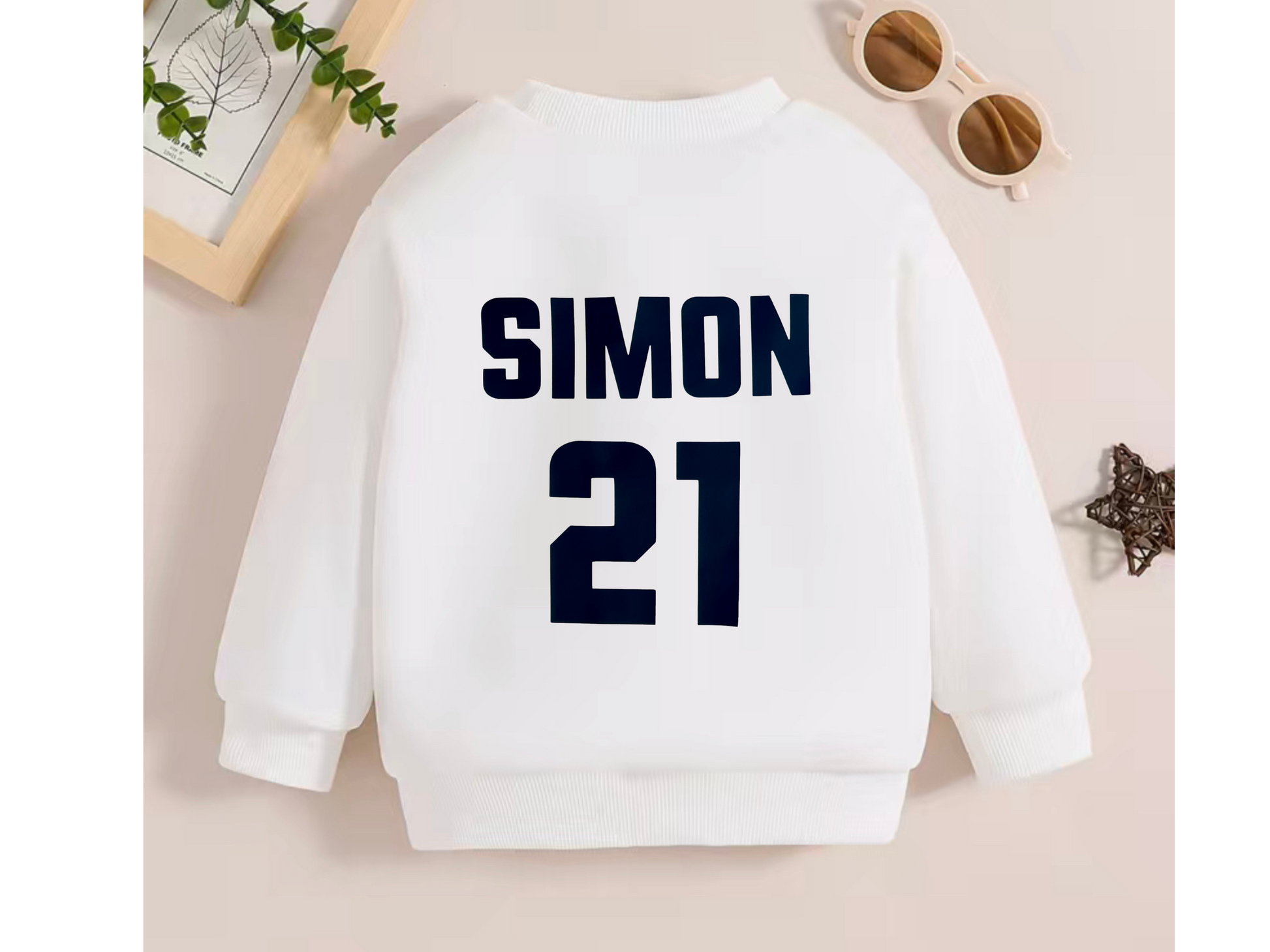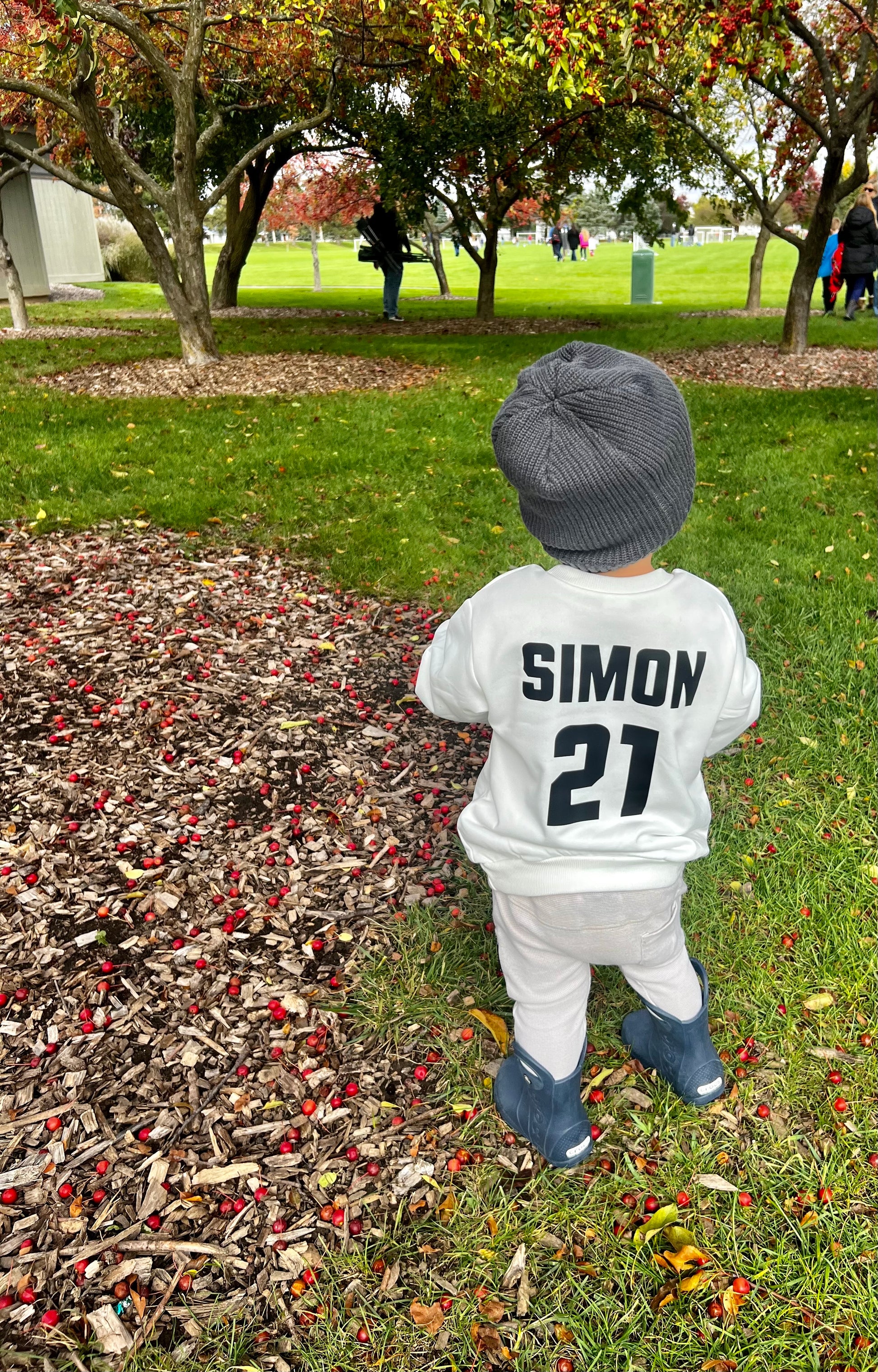 Make it custom by adding your little ones name or initials to the back of the sweatshirt with pacthes.